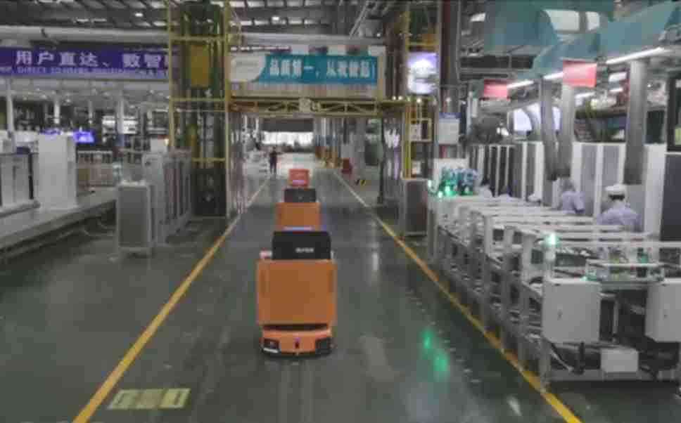 为车载冰箱物流配送打造的智能解决方案,,,包含产中物流通过潜伏举升AMR搬运至线边,,,,产后成品物流智能仓储,,,流程包含产中物流智能齐套入库,,线边安灯叫料AMR智能配送至线边,,成品入库、、出库,,通过无人堆高车机器人,,,智能仓储管理替代人工作业管理,,,实现更高存储、、、更高效率、、、、更具柔性化的解决方案。。。